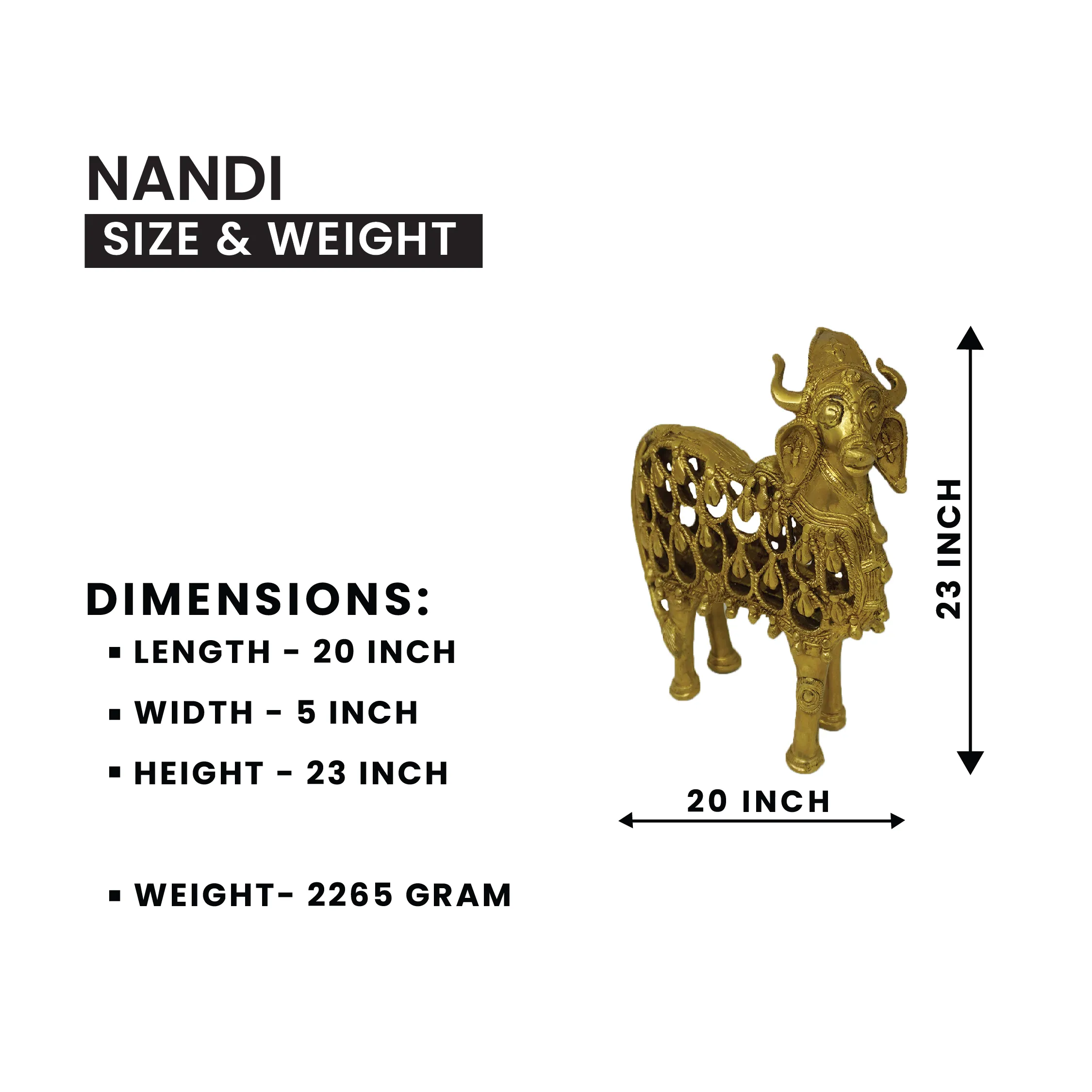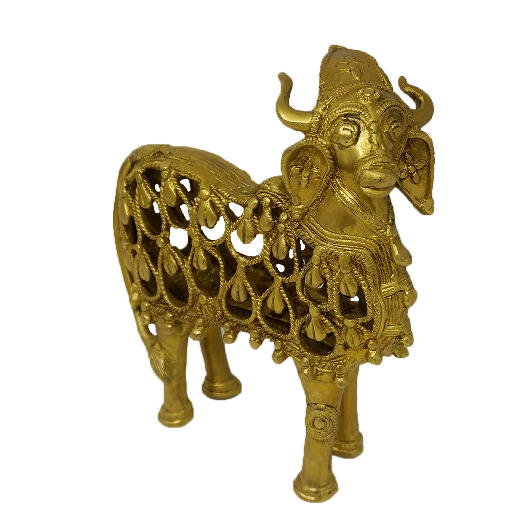 Celebrate India’s sacred traditions with the Kalasathi Handcrafted Dhokra Brass Nandi Jali Figurine, a beautiful representation of Lord Shiva’s sacred bull, Nandi. This handcrafted sculpture features intricate jali (lattice) design work, created by skilled Bhareva artisans from Bastar, Madhya Pradesh, using the ancient lost-wax (Dhokra) metal casting technique.