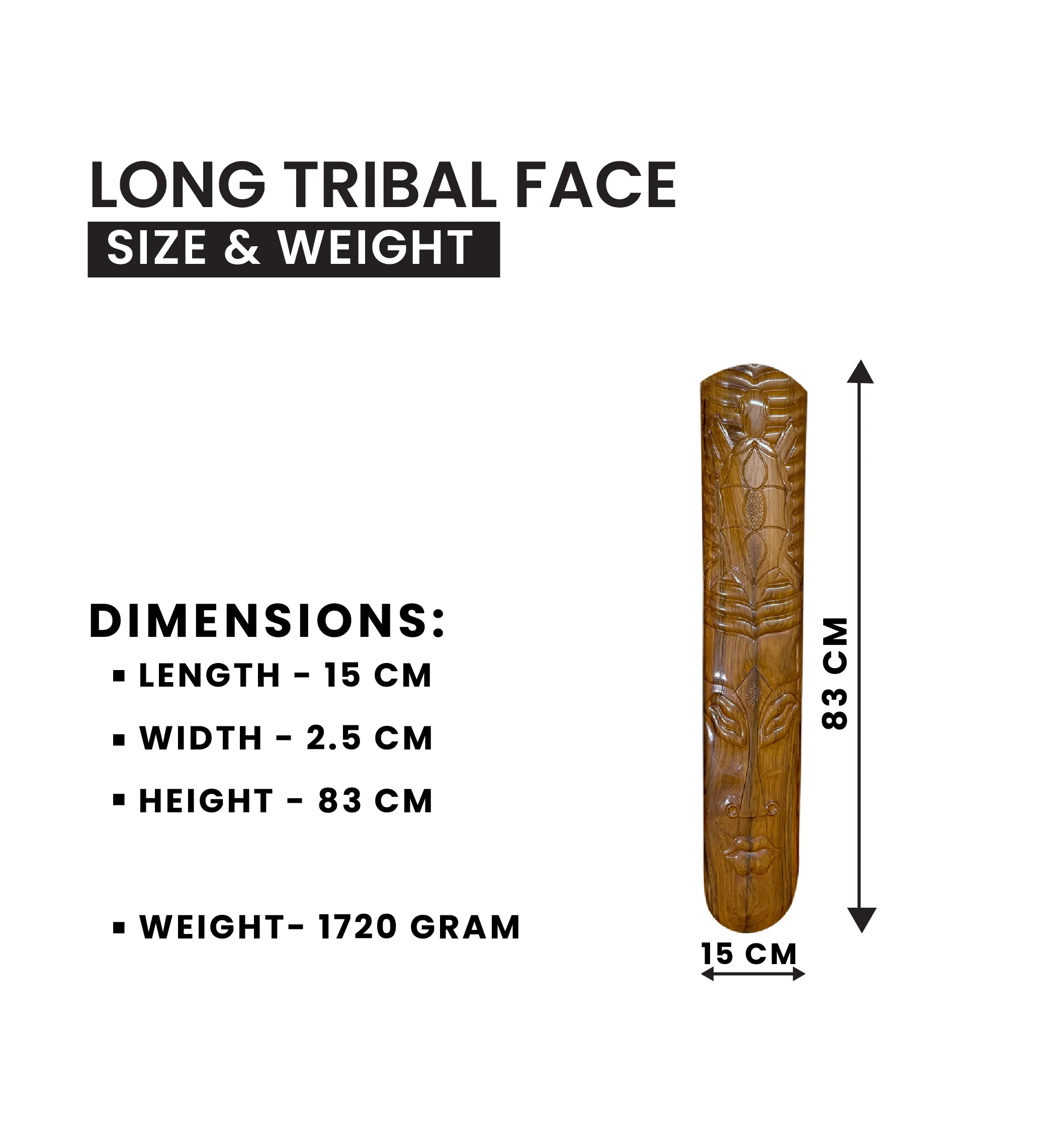 Add a touch of tribal elegance to your interiors with this Handcrafted Wooden Long Tribal Face Wall Hanging. Standing tall at 32.5 inches in height and weighing 1.72 kg, this wall décor piece is a stunning showcase of Indian tribal artistry.\r\n\r\nCarved from premium teak wood, the long tribal face design represents heritage, strength, and traditional craftsmanship. Its elongated shape makes it a perfect centerpiece for large walls in living rooms, offices, art galleries, or cultural spaces.\r\n\r\nWhether as home décor, office décor, or a thoughtful gift, this handcrafted artwork brings cultural depth and aesthetic charm to any environment.